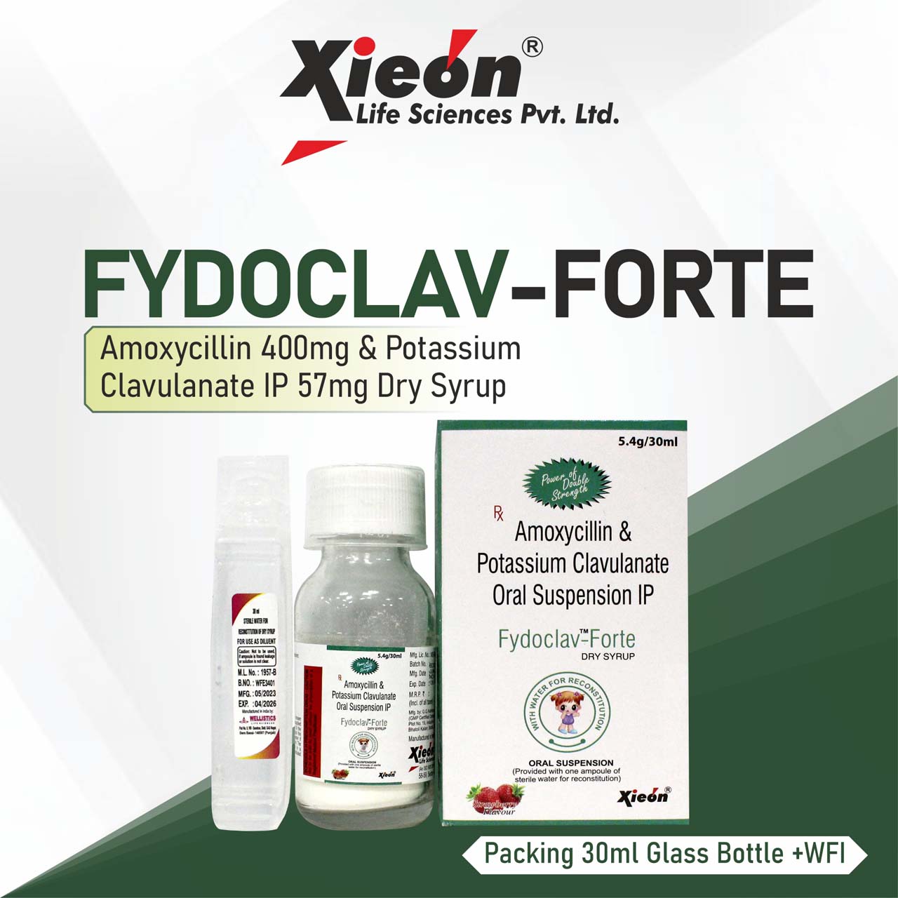 4. FYDOCLAV-FORTE (With WFI) Amoxycillin Trihydrate 400 mg & Potassium Clavulanate 57 mg Oral Suspension IP