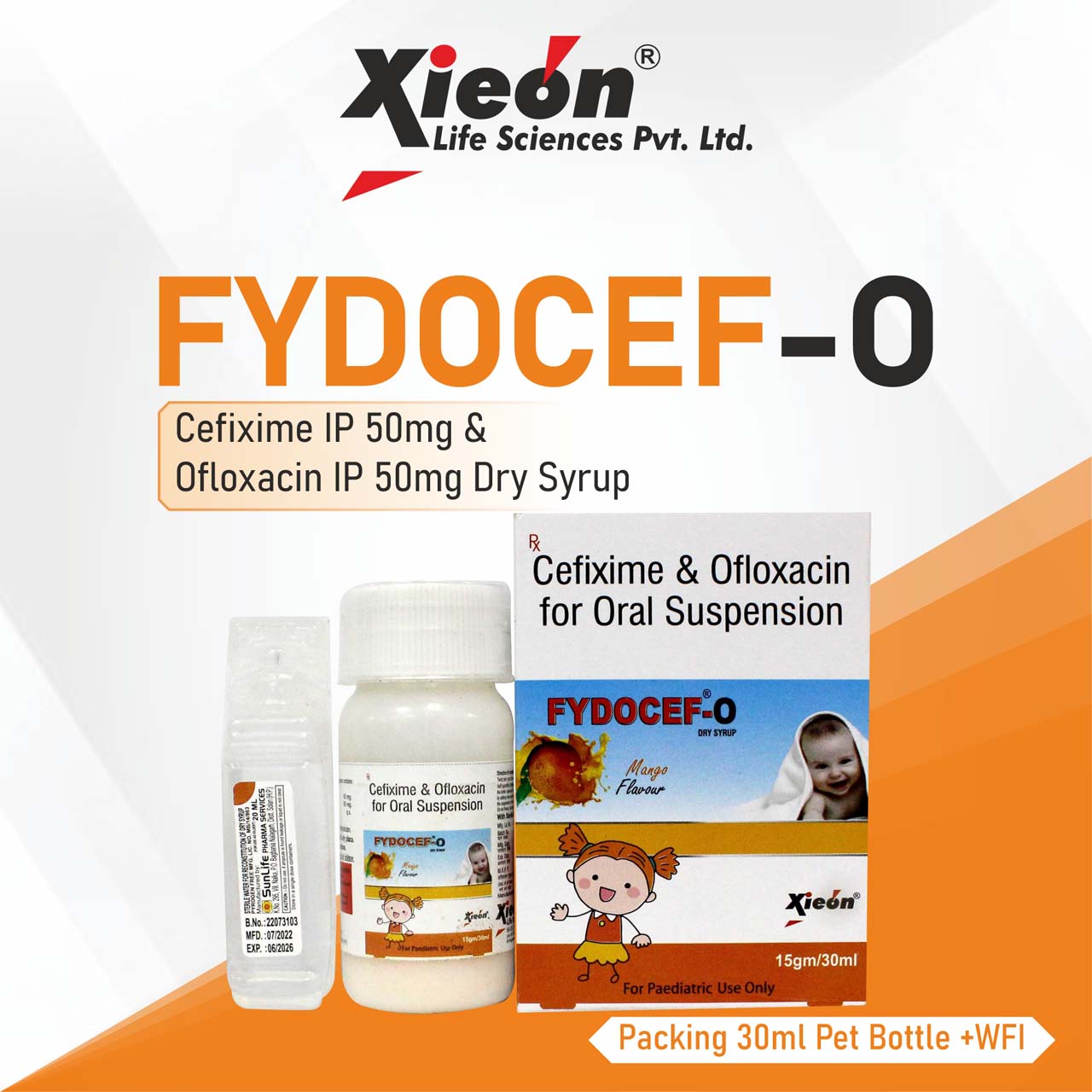 2. FYDOCEF-O (Mango Flavour) (With WFI) Cefixime IP -50 mg Ofloxacin IP-50 mg